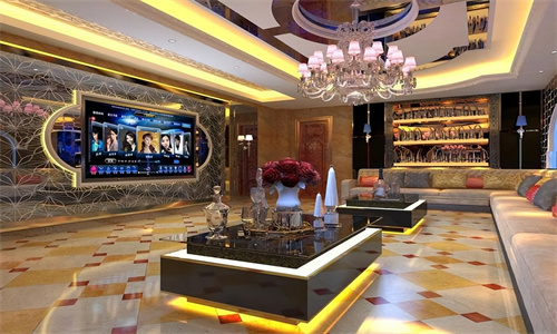 这家KTV采用经典的金钻风格,装修豪华大气,充满了贵族气息。整体色调以金色、黑色为主,搭配红色的装饰元素,营造出庄重、典雅的氛围。大厅内摆放着大型的水晶吊灯和精致的雕塑,墙面采用大理石装饰,尽显高端品质。包厢内采用高档的丝绒沙发、雕花桌椅和复古的装饰画,每个包厢都仿佛是一个独立的豪华私人空间。